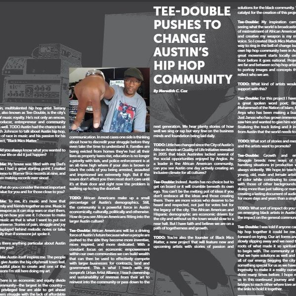 UAA founder Tee Double featured on the cover of TODO magazine discussing the growth and needed tools to sustain Urban music and its creators in Austin,Texas.